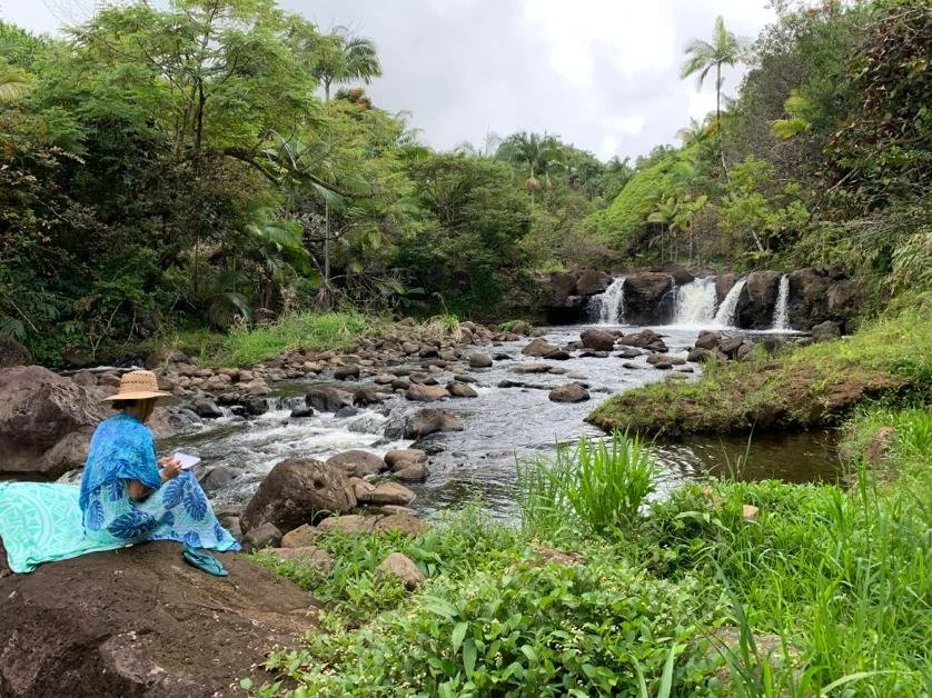 Her art is influenced by her spiritual practice and study of Umbanda, Kriya Yoga, Hula and Santo Daime, shaped by her experience of raising three children, and inspired by her work caring for tropical ethnobotanical gardens.